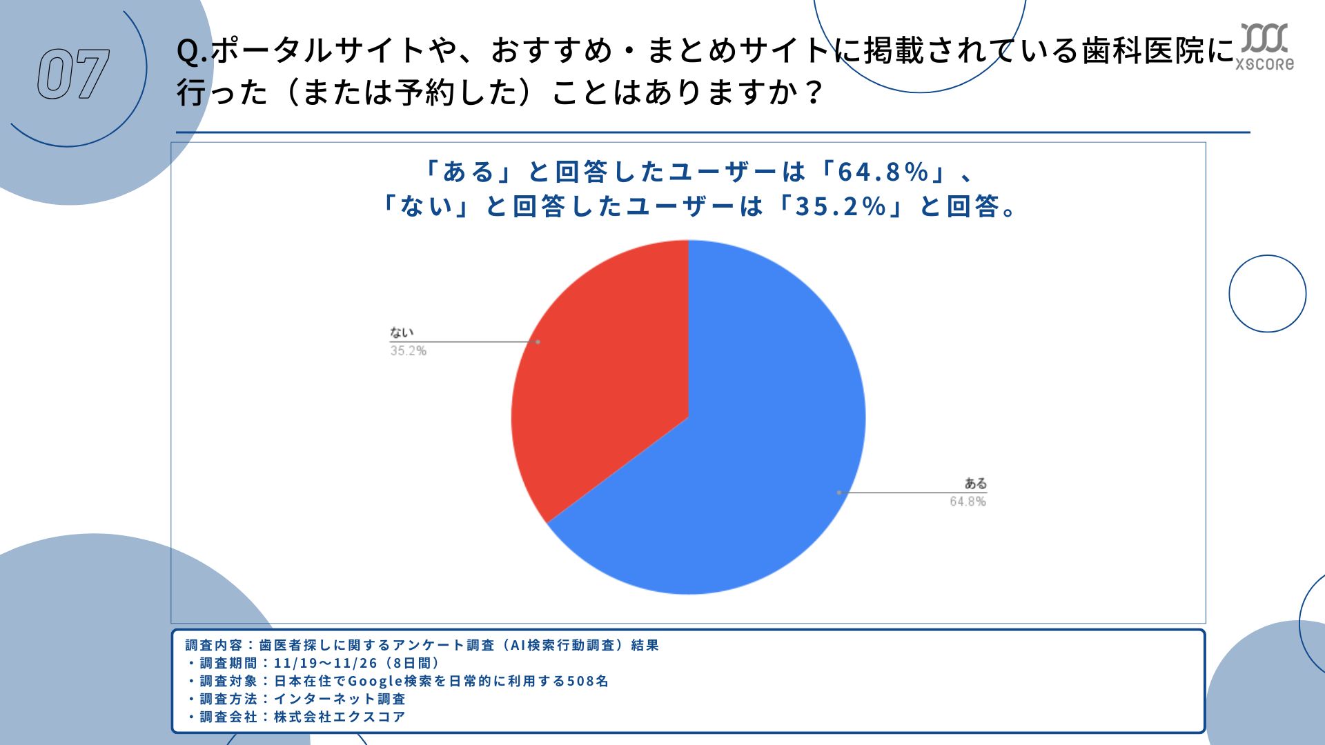 歯科検索サイト「Medee(メディー)」や中小企業向けWebマーケティングメディア「Webma(ウェブマ)」を運営する株式会社エクスコアは、日本在住でGoogle検索を日常的に利用する508名を対象に、歯科医院探しに関するアンケート調査(AI検索行動調査)を実施しました。その結果を公開していきます。