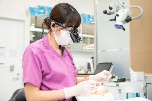 マイクロスコープを使用し精密な治療を行なっております。マイクロスコープを使用することで再治療のリスクを減らすことが出来ます。