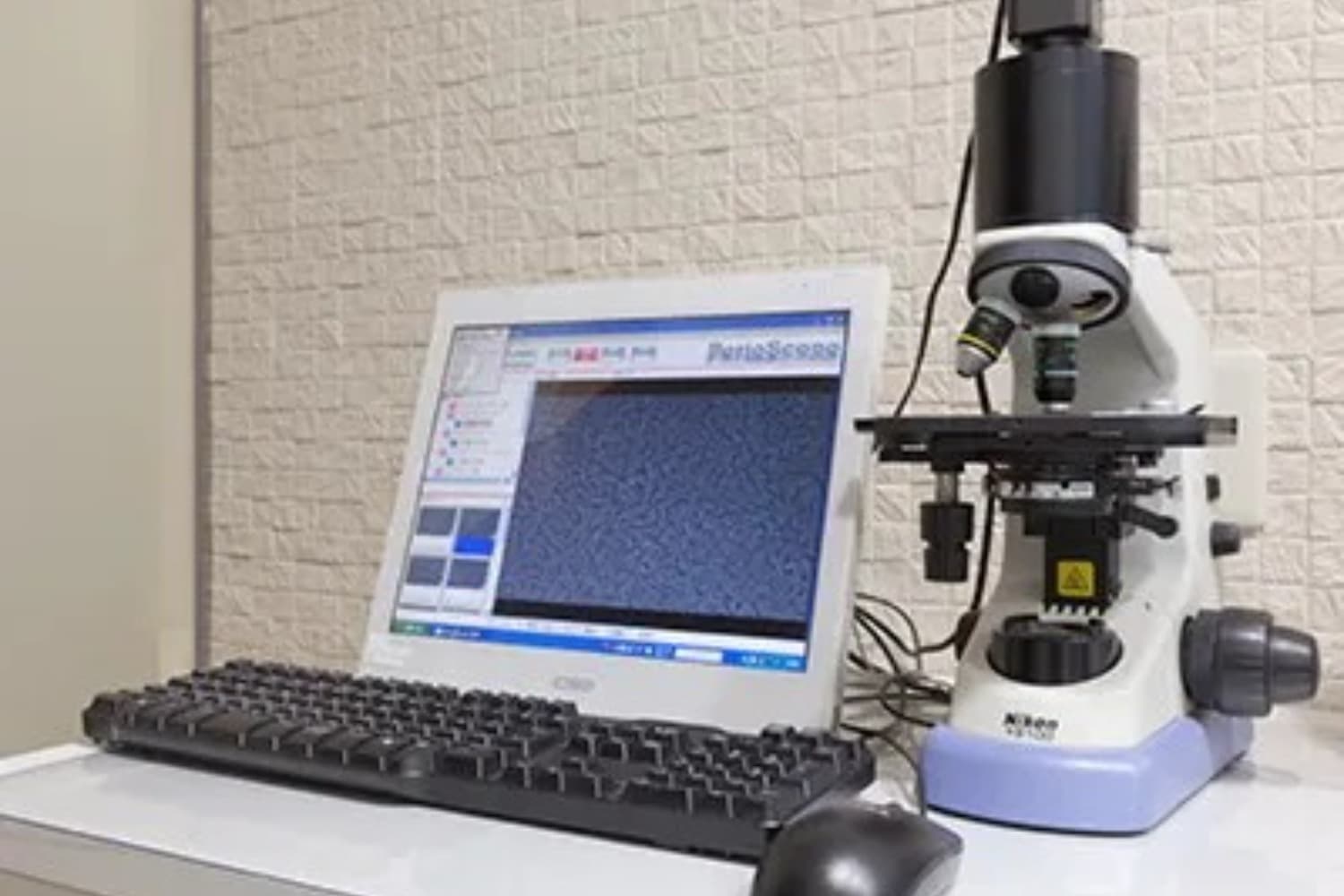 お口のなかに潜む細菌を確認するために用いられる顕微鏡です。患者さん一人ひとりの口内に潜む細菌を特定し、細菌に合わせた治療を可能とします。