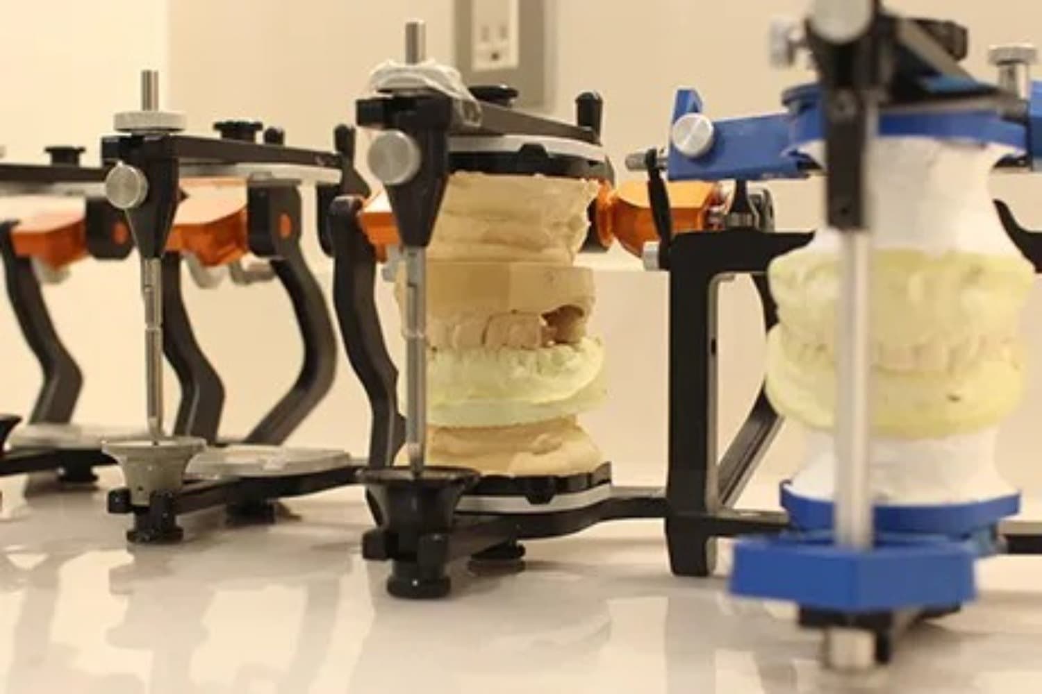 患者さんの上下の歯やあごの動きを模型上で再現し、噛み合わせを正確に診断・調整するための装置です。