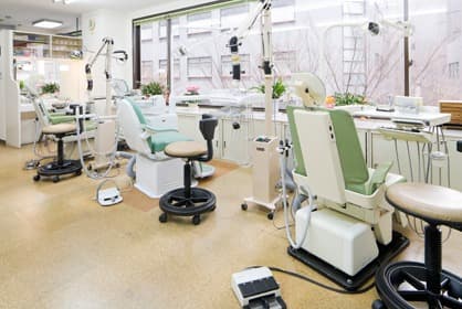 3階の大きな窓に面した明るく開放的な診療室です。床はコルクタイルで落ち着いた雰囲気の中、落ち着いて治療を受けることが可能となります。
