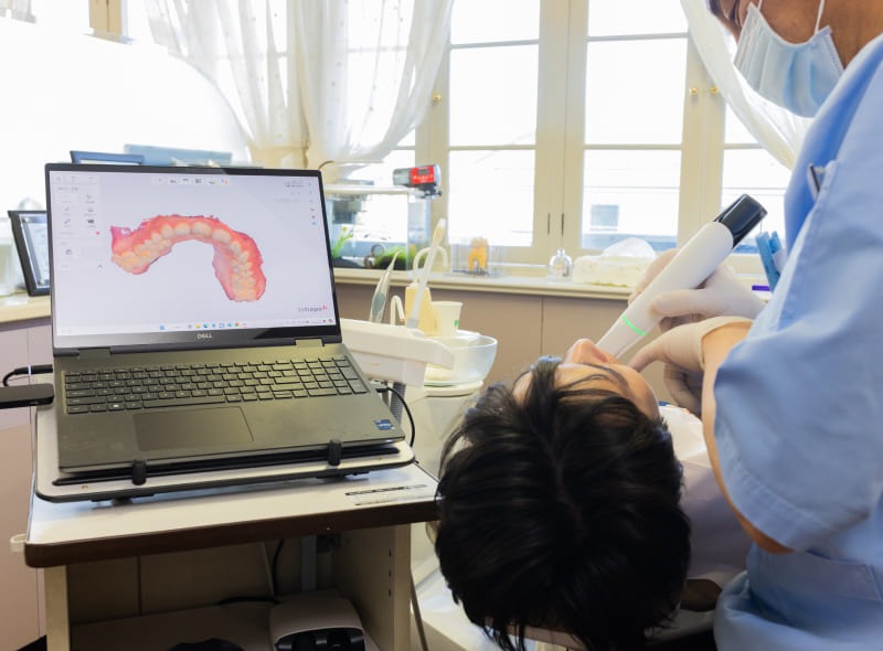 事前の検査にて口腔内スキャナーを活用し、並びや噛み合わせ、さらには1本1本の歯の微細な状態に至るまで詳細なデータを取得。