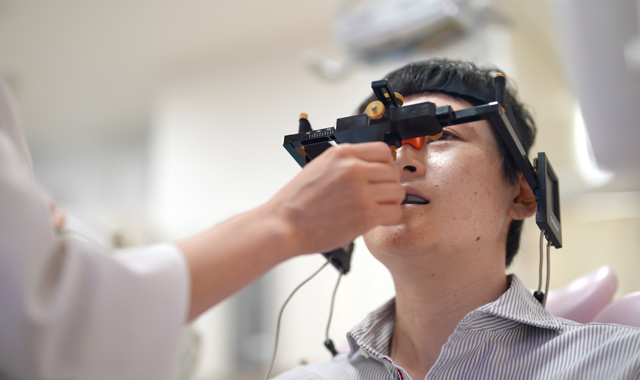 顎の運動や筋肉の運動を記録するための装置です。顎変形症である全ての患者さんは、この装置を用いて治療前後に顎や筋肉の活動を記録します。