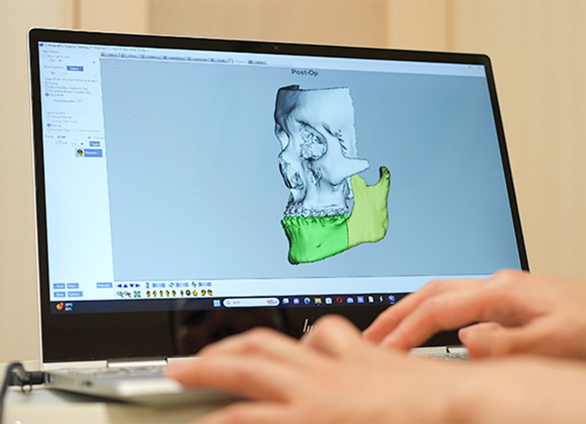 歯科医師の経験だけに頼るのではなく、事前に3Dの手術シミュレーションで骨格を分析するため、精度の良い治療が期待できます。