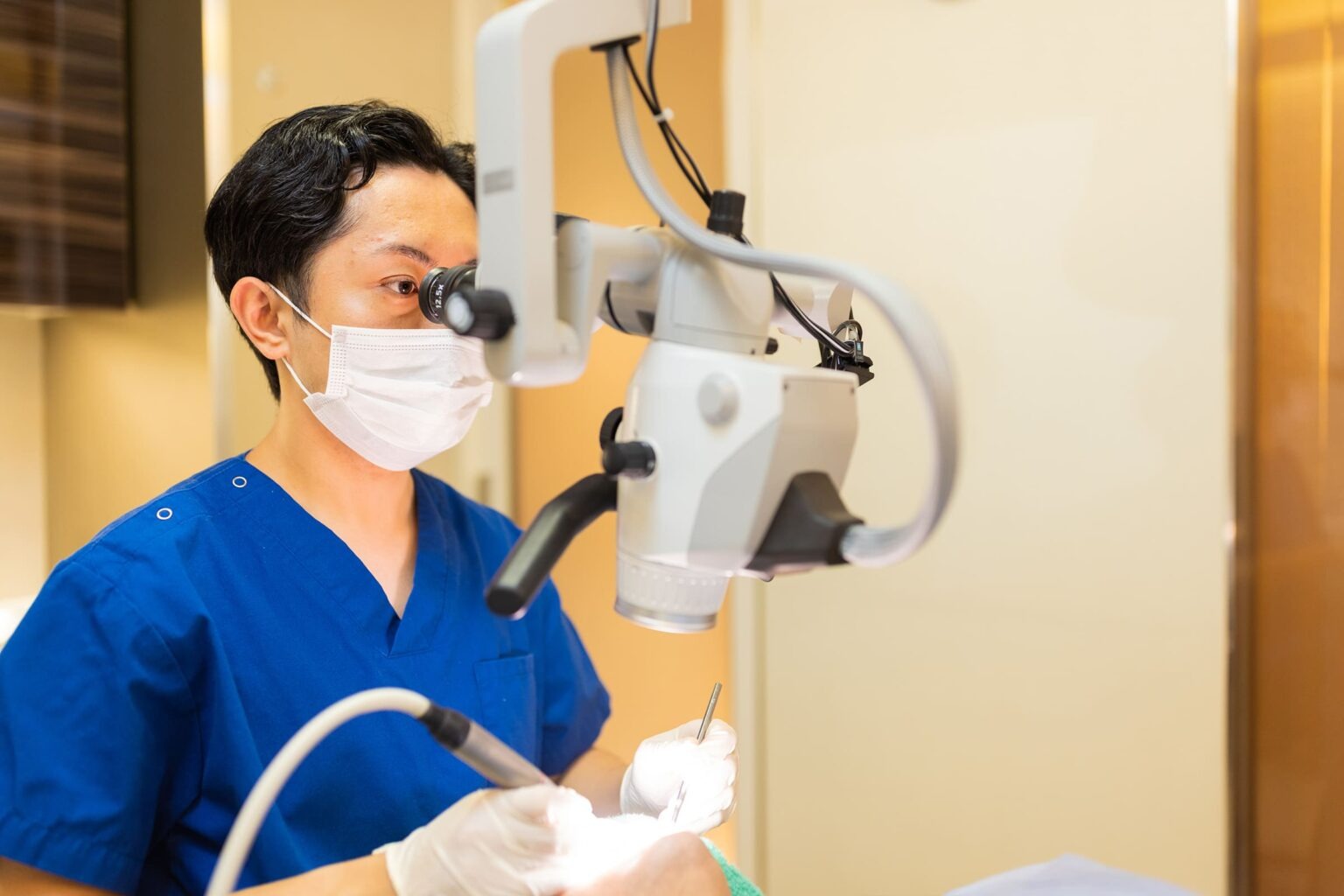 マイクロスコープは患部を肉眼の数十倍にまで拡大して観察できる歯科用顕微鏡です。肉眼では捉えきれない患部の細部まで見れるようになり、より精密な治療が可能となります。