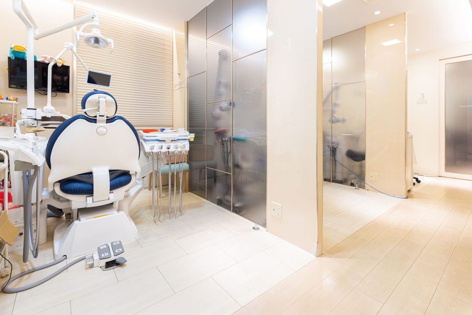 壁に仕切られプライバシーに配慮された、完全個室の診療室です。