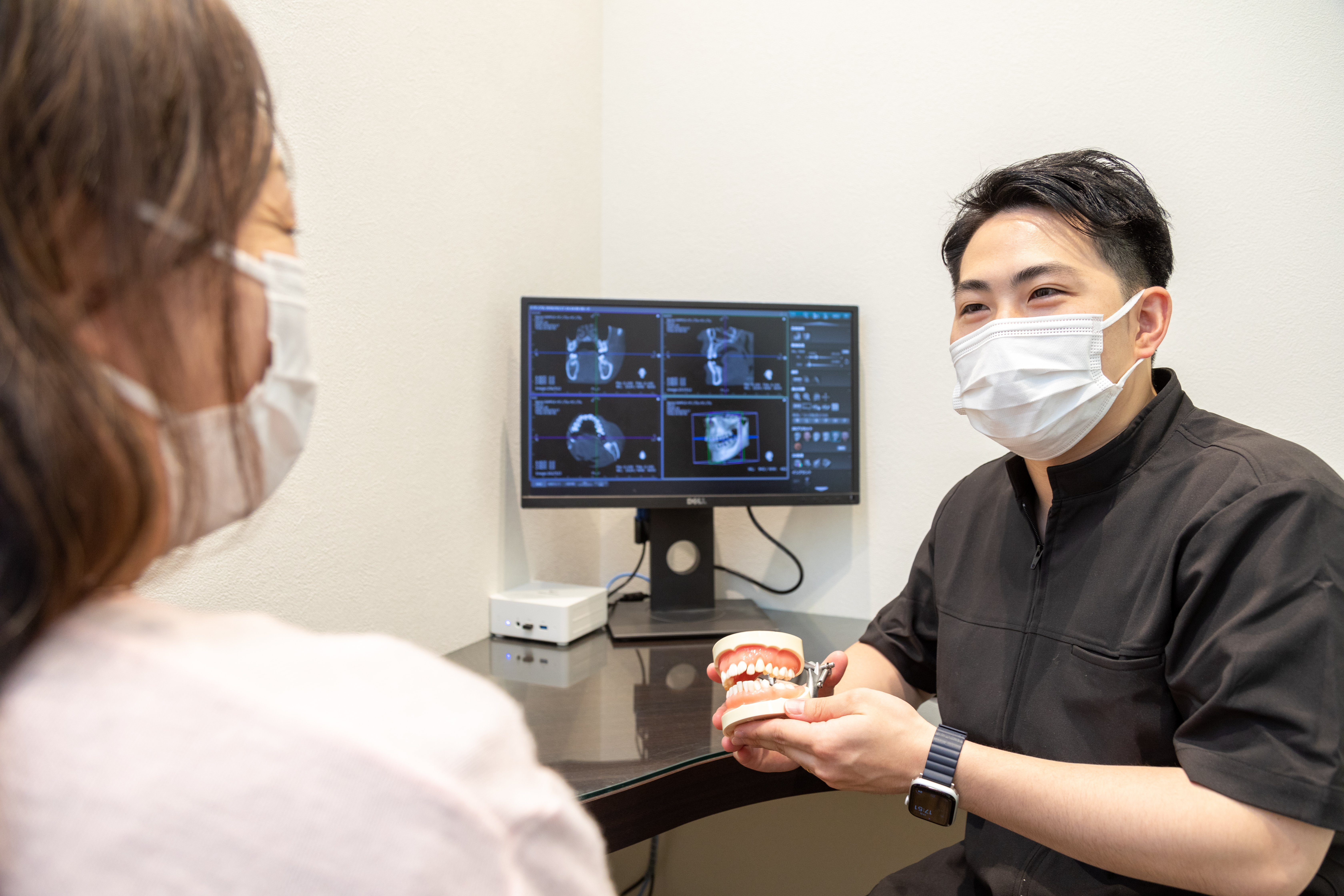 歯科用CTやデジタルレントゲンを駆使してお口の状態を正確に把握することから始まり、常に根拠を持った納得感のある説明を徹底することで患者さんの不安を解消。