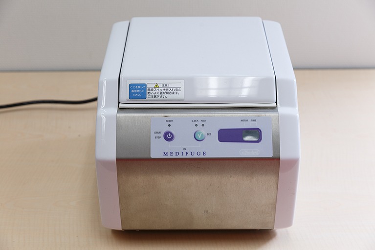 患者さん自身の血液を用いて、傷の修復や骨の再生などを促進するゲルを作る装置です。
