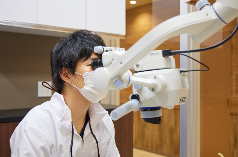 マイクロスコープは歯科治療の精度を飛躍的に向上させるための機器であり、対象を肉眼の数十倍にまで拡大観察することが可能です。