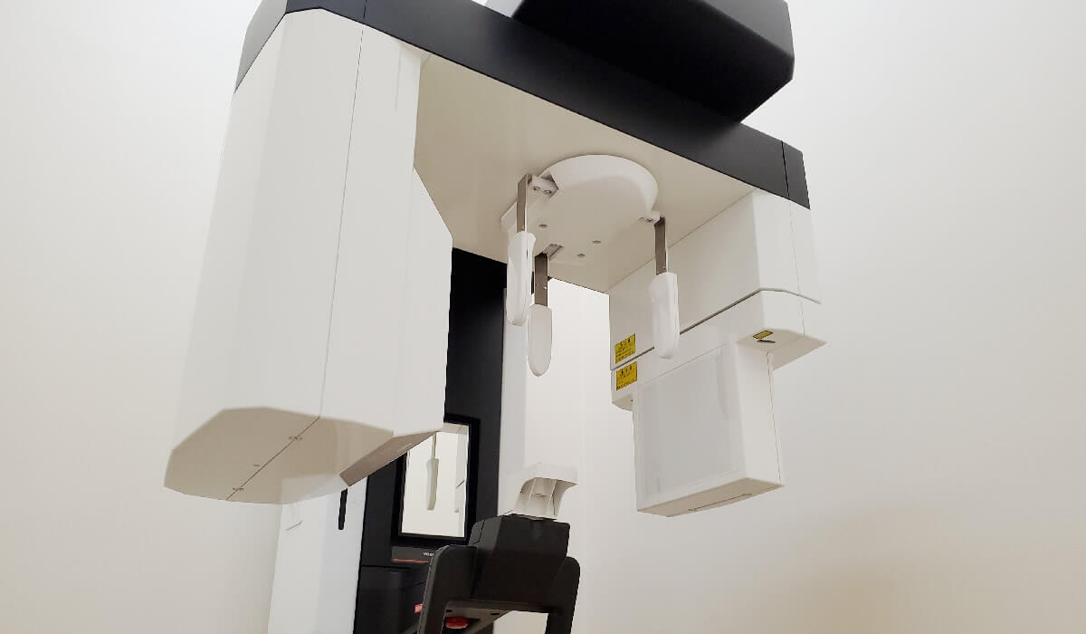 お口の全体像を二次元的なレントゲン写真として映し出す機器です。目視では確認できない隠れた虫歯の進行状態や歯の根の状態などを把握することが可能です。
