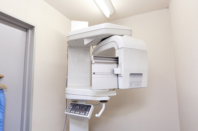 歯科用CTは、X線を使用して口腔内やその周囲を立体的に映し出す機器です。歯や顎の状態だけでなく、神経や血管の位置まで詳細に確認できるため、治療の精度向上に役立ちます。インプラントや矯正治療をおこなう際には、欠かせない設備のひとつです。