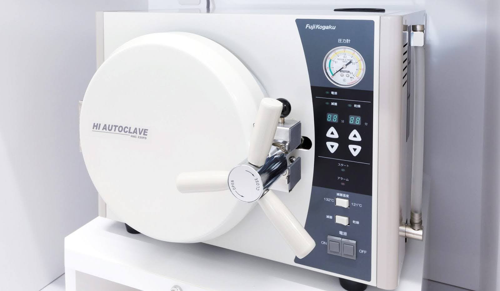 使い捨てにできない治療器具を徹底的に滅菌処理するための装置です。
